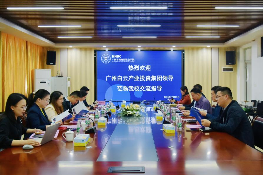 11月23日,广州白云产业投资集团(以下简称白云投资集团)党委委员副总经理付正山、集团董事、白云市场公司总经理陈丹等一行到访我校交流。学校党委书记王书汉、副校长刘金文、人力资源部部长黄少斋、教学科研部副部长陈宁、就业与校企办主任付立阳、校企合作负责人吴琼英参加交流会。