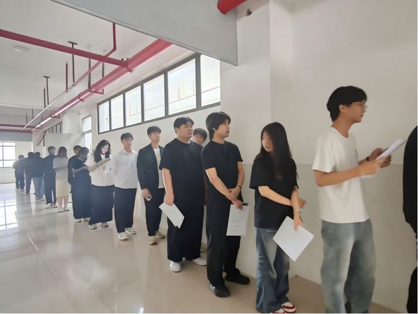 面试现场秩序井然有序,学子们自信昂扬、从容不迫。面试环节中,同学们先进行简洁清晰的自我介绍,条理分明地阐述个人优势、创业构想与项目经历,充分展现了华贸学子积极向上、敢闯敢拼的青春风貌。