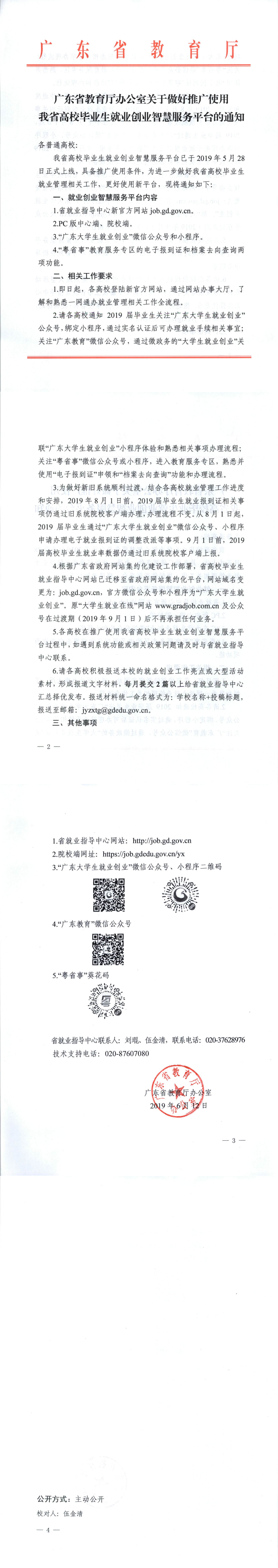 广东省教育厅办公室关于做好推广使用我省高校毕业生就业创业智慧服务平台的通知